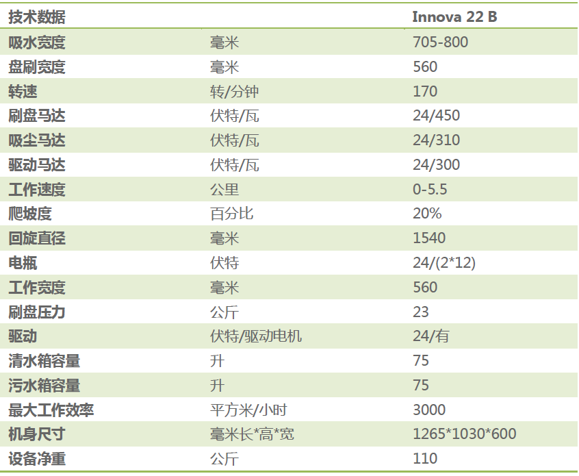 意大利COMAC駕駛式洗地機(jī)Innova22B產(chǎn)品特點(diǎn):1、配備高性能出口型免維護(hù)電瓶,使用壽命更久、動力更強(qiáng),可有效延長連續(xù)工作時(shí)間。2、節(jié)省清潔所用時(shí)間,完成1000㎡的地面清洗任務(wù)僅需20分鐘。3、清潔效率是傳統(tǒng)人力清洗的幾十倍,并且清潔效果更出色,噪音低,一臺洗地機(jī)能節(jié)省10幾名工人的開支,有效降低了清潔成本問題,管理維護(hù)成本極低,省力、更省錢!4、操作面板簡單、易懂,鑫金邦免費(fèi)提供上門培訓(xùn)服務(wù),“保潔大媽也能操作自如”。5、適用環(huán)境:小區(qū)物業(yè)、工廠車間、市政單位、商場、車站機(jī)場、廣場、公園、學(xué)校、醫(yī)院、倉庫、停車場等地。